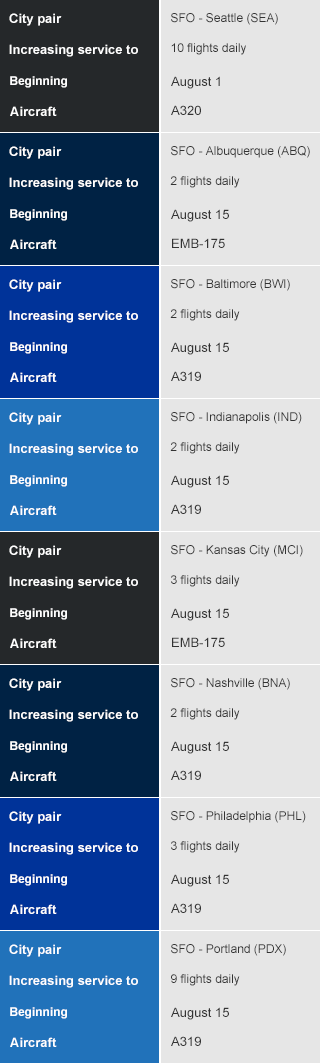 United Jetstream | | | | | | More flights and larger aircraft to popular destinations in the U.S. and Canada from SFO | | As the leading carrier in the San Francisco Bay Area, United has increase in the number of flights between San Francisco (SFO) and eight destinations and the conversion of select regional jet flights to larger mainline aircraft in ten markets. Scheduled enhancements build on previously announced new service from SFO to seven U.S. cities beginning June 8. | | Additional flights between SFO and 8 destinations | | | Larger aircraft on daily service between SFO and 10 cities | | | United has approximately 300 daily departures to nearly 100 destinations from San Francisco, more than any other carrier in the Bay Area. Earlier this year, United announced new service to 31 destinations across the U.S. and Europe, including new seasonal service between San Francisco and Munich, Germany (MUC) starting May 24. | | From San Francisco, United offers year-round, nonstop trans-Atlantic service to destinations including Frankfurt (FRA), London (LHR), Paris (CDG) and Tel Aviv (TLV). | | | | | | | | Northstar Travel Group 100 Lighting Way, 2nd Floor Secaucus, NJ 07094 | | | |