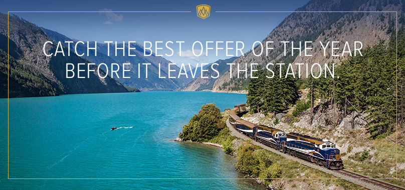 Catch The Best Offer of the Year Before it Leaves the Station | | | | | RECEIVE $800* USD PER COUPLE IN ADDED VALUE. | | Don't miss out on our biggest offer of the year. Sky-high peaks, fine dining, roaming wildlife, stunning sunsets-a journey through the Canadian Rocky Mountains by rail is quite simply, unforgettable. Book a qualifying 2018 package of 8 days or more by August 25th, 2017 and your clients will receive $800 USD per couple in added value to enhance their rail journey. | | | | | | | | WHAT CAN THEY SPEND THEIR $800* USD CREDIT ON? | Download Early Booking Bonus Flyer | | | | | | | | | Join us online and get the latest updates first. | | | | | | | Terms & Conditions: *Credit must be requested at the time of booking and will not be automatically allocated or retrospectively added. Credited option must be selected at the time of booking and can only be added to a Rocky Mountaineer package. Offer valid on new 2018 bookings made in Canada between April 3, 2017 and August 25, 2017. This offer is applicable to 2018 Rocky Mountaineer packages of eight or more days on select dates only. Travel during the 2018 Rocky Mountaineer summer season between April and October on select dates. Deposits are required at the time of booking and full payment of the balance must be made by January 12, 2018. Maximum offer value of $400 USD added value credit per adult ($800 USD added value credit per couple) is with qualifying packages of eight days or more in GoldLeaf or SilverLeaf Service. Applicable to single, double, triple or quad package prices. Qualifying packages can be purchased in any class of train travel or grade of accommodation. An amendment fee of $40 USD per booking will be charged for changes to the use of the credit after the booking has been confirmed. Credits can only be used towards the purchase of additional services offered by Rocky Mountaineer - the credit cannot be used to upgrade rail service or accommodation. Offer value is expressed in USD as of February 1, 2017 as a guideline only and may vary at the time of booking based on changes in exchange rate with the CAD. US guests must pay in USD. Credit cannot be deferred to a later trip. Offer is not applicable to child prices, 2 or 3-day rail only bookings or Group Tour bookings. Not available in conjunction with any other offer. Offer has no cash value and is non-transferable. Offer is capacity controlled and may be modified, withdrawn or amended without prior notice. Additional conditions apply. | | | | Rocky Mountaineer 1100 - 980 Howe Street, Vancouver BC V6Z 0C8 Canada | | | | Northstar Travel Group 100 Lighting Way, 2nd Floor Secaucus, NJ 07094 | | | |