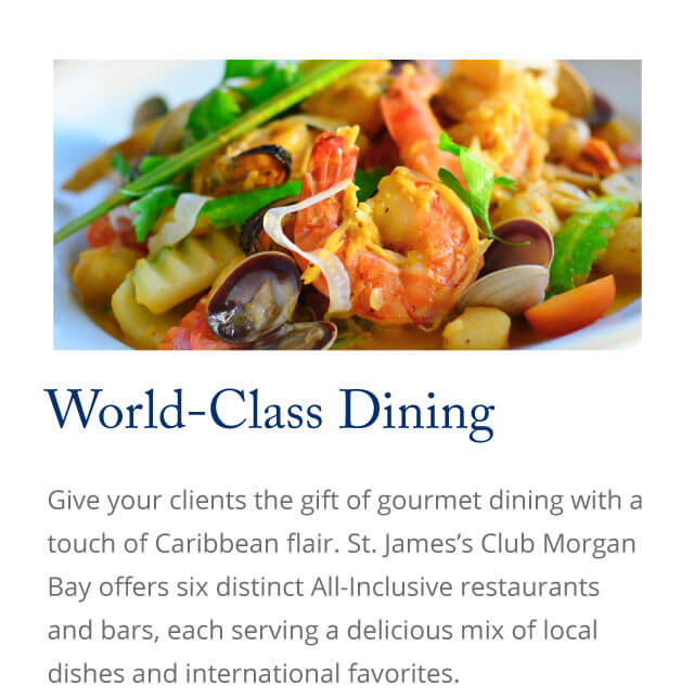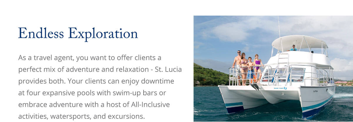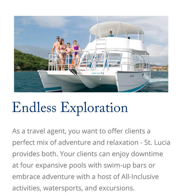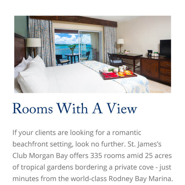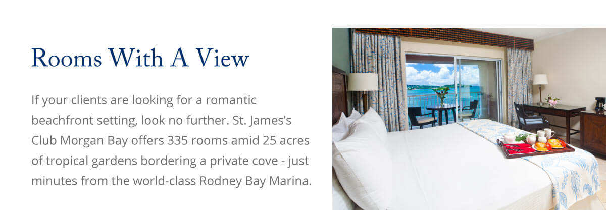 | | | | | Miles of striking landscapes. Palm-fringed beaches. And idyllic sunsets to the backdrop of the majestic Piton mountains. Let the beauty of St. Lucia take your clients' breath away with a stay at the All-Inclusive St. James's Club Morgan Bay. | | | | | | |