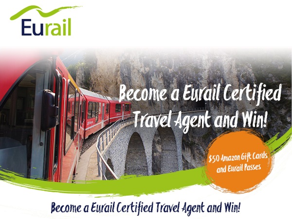 Register today to become a Eurail Specialist. The first 100 agents to register and complete the Eurail Specialist Course will win a $50 Amazon Gift Card. You will also be automatically entered into a drawing to win two 1st Class Eurail Global Passes, each valid for 10 days of travel within two months. One winner will be drawn each month from March 2018 through May 2018. Use these passes to gain new business, reward major clients, or treat yourself to a well-deserved vacation.