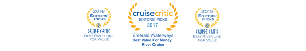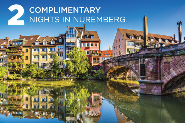 | Terms and Conditions: Offer applicable to all Danube Explorer cruise departing October 16, 3018. for new bookings made through March 31, 2018. May be combined with the A+ Event offer for this cruise only. Guests may choose savings of $1300 per person or free air to Europe. Maximum value of air ticket is $1300 per person inclusive of all taxes & fees. A non-refundable initial deposit of $500 per person is required at the time of booking, with full payment required 90 days prior to departure. A secondary non-refundable deposit of $1,300 per person is due prior to air ticketing. Emerald Waterways reserves the right to ticket the airfare upon receipt of deposit. Travelers who purchase their own air receive $1300 savings per person. Economy Air only on Emerald Waterways' choice of airlines and routes. Fly from 25 major US gateways: ATL Atlanta, BOS Boston, BWI Baltimore, CLT Charlotte, CVG Cincinnati, ORD Chicago, DFW Dallas, DEN Denver, DTW Detroit, IAH Houston, LAX Los Angeles, MIA Miami, MSP Minneapolis, EWR Newark, JFK New York, MCO Orlando, PHL Philadelphia, PHX Phoenix, PIT Pittsburgh, RDU Raleigh-Durham, SAN San Diego, SFO San Francisco, SEA Seattle, TPA Tampa, IAD Washington, DC. All other gateways receive air credit savings. These offers are not combinable with any other offer or except for Travel Show and agent training vouchers. Not combinable with group discounts. Taxes & port charges are included in the price. Emerald Waterways 2018 | ALL RIGHTS RESERVED | One Financial Center, Suite 400, Boston, MA 02111 Ad Code 18_EW103 |