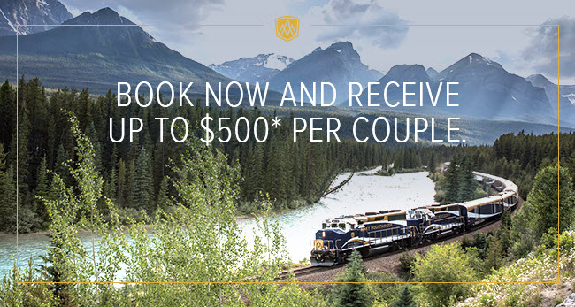 *Terms & Conditions: Offer applies only to new 2018 bookings made by March 2, 2018 for qualifying Rocky Mountaineer packages booked in GoldLeaf Deluxe, GoldLeaf or SilverLeaf Service for travel during the 2018 Rocky Mountaineer season on selected dates. Added value credit ("Credit") must be requested at the time of booking and will not be automatically allocated or retroactively added. Customer's selection of specific Credit must be made at the time of booking and an amendment fee of $40 USD per booking will be charged for changes after the booking has been confirmed. Deposits are required at the time of booking and full payment of the balance must be made 61 days prior to departure. Offer applies to single, double, triple or quad package prices and amount of Amount of Credit varies by duration of package: maximum Credit of $250 USD per adult ($500 USD per couple) is for qualifying packages of eight days or more; Credit of $170 USD per adult ($340 USD per couple) is for qualifying packages of five to seven days. Credit can only be used towards the purchase of specified additional services offered by Rocky Mountaineer and cannot be used against the price of the purchased package or to upgrade rail service or accommodation. Credit is expressed in USD as a guideline only and may vary at the time of booking due to changes in the exchange rate. Offer cannot be combined with any other offer, is not applicable to child prices, 2 or 3-day rail-only bookings or group tour bookings, has no cash value, is non-transferable and cannot be deferred to a later trip. Offer is capacity controlled and may be modified, withdrawn or amended without prior notice. Please call us at 1.877.460.3200 or contact your travel agent for all details, terms and conditions.